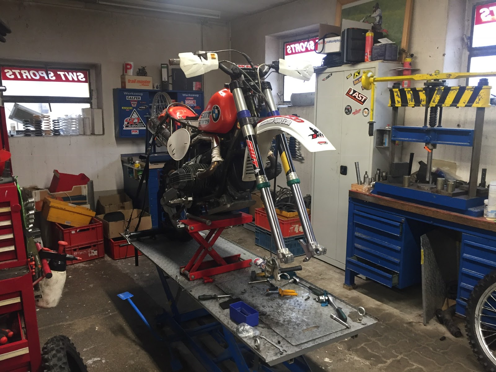 Die Wellness-BMW ist ja schon eine ganze Weile im Einsatz. Doch fertig ist so eine Geländesportmaschine nie. Deshalb gibt es auch hier immer wieder Verbesserungen, die ich vornehmen darf. Da meine total geile Conevalve Gabel, die Markus Tolksdorf (+15.11.15) von TRP für mich gebaut hatte, die er aber leider nicht mehr warten kann, musste ich mich immer mal nach einer Alternative umschauen.